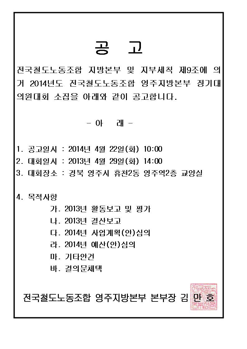2014³â ¿µÁöº» Á¤±â ´ëÀÇ¿ø´ëȸ °³ÃÖ °ø°í