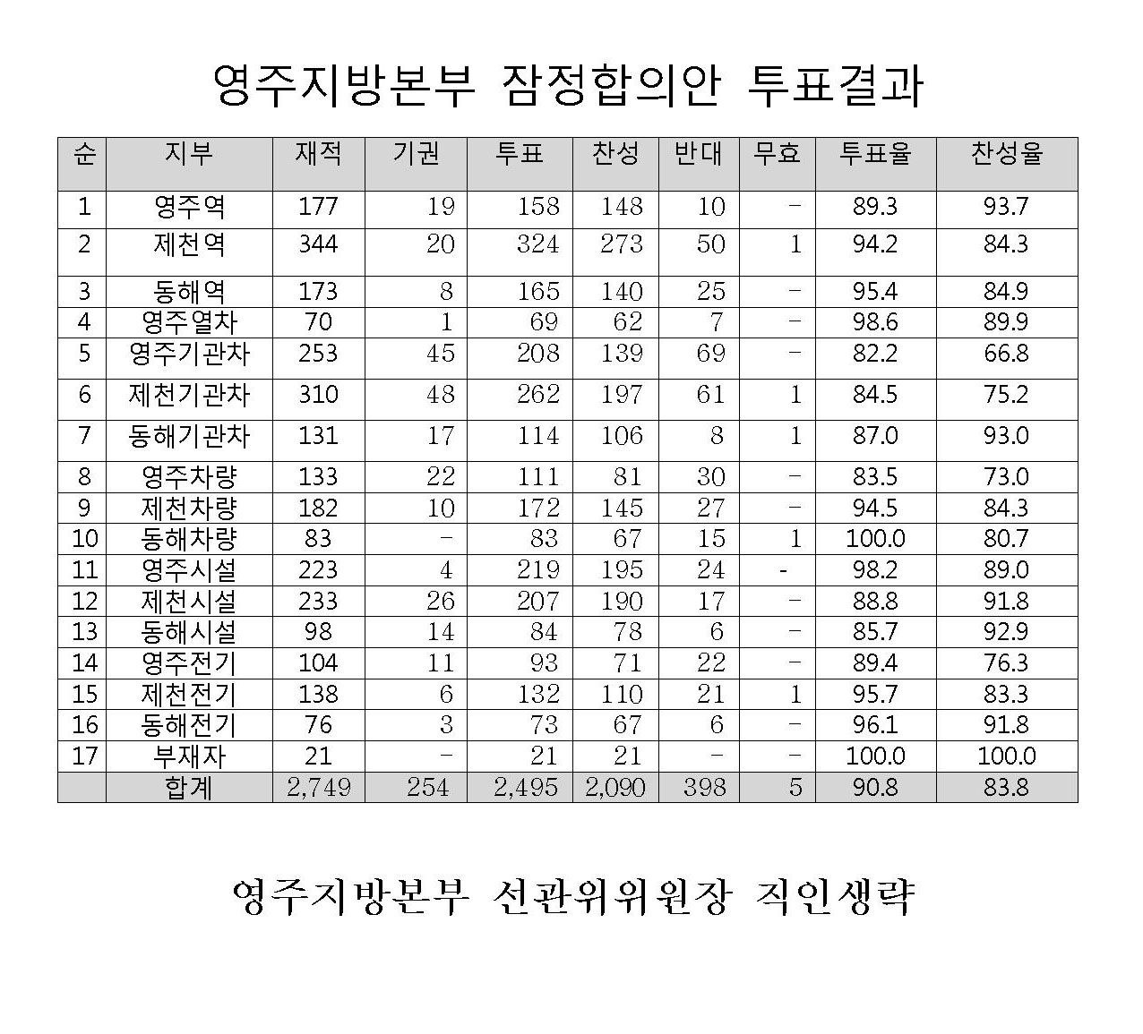 ¿µÁÖÁö¹æº»ºÎÀáÁ¤ÇÕÀǾÈÅõÇ¥°á°ú